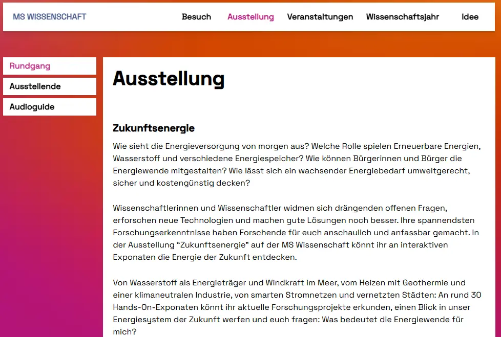Mit einem Klick auf MS Wissenschaft kommt ihr immer zurück zur Start-Seite.