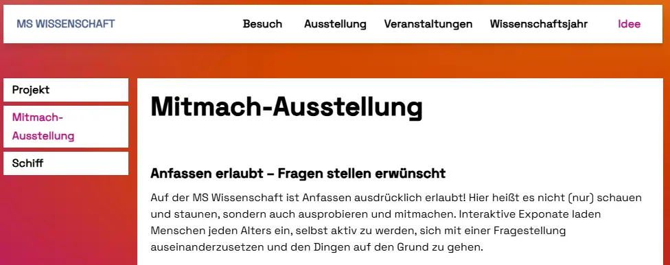 Im Bereich Idee findet ihr Infos zum Projekt MS Wissenschaft.